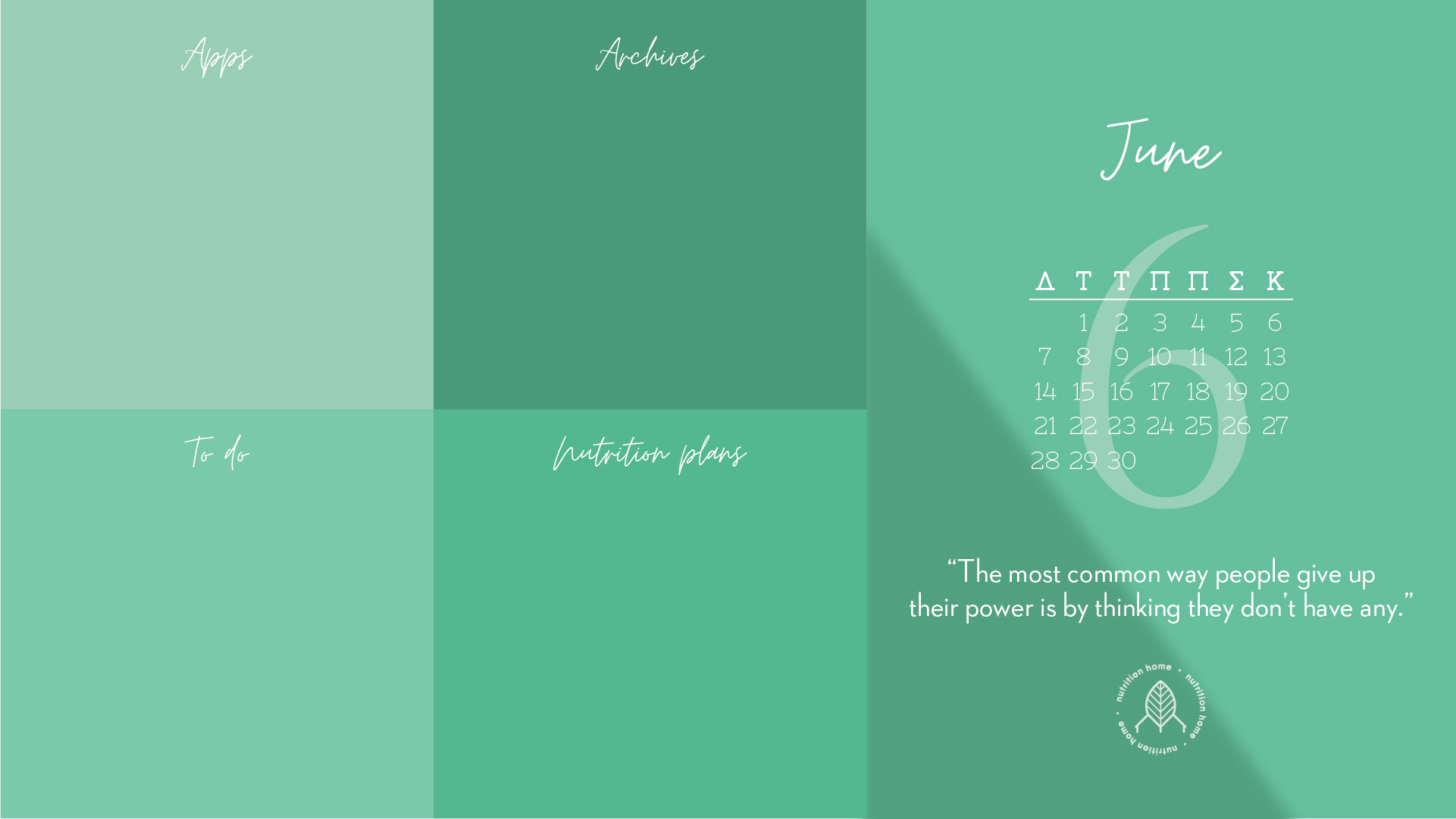 Οργανώσου για τη νέα χρονιά με το Wallpaper Organizer του Nutrition Home που μπορείς να κατεβάσεις στο pc ή το laptop σου και να τακτοποιήσεις την επιφάνεια εργασίας σου! Κάθε μήνα θα ανεβαίνει καινούργιο wallpaper με το motivational quote του μήνα! Stay tuned ♥